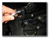 ignition coil. Loosen the single bolt that holds the ignition coil in place by turning it counterclockwise with the 10mm socket and 1/4" drive ratcheting wrench. |